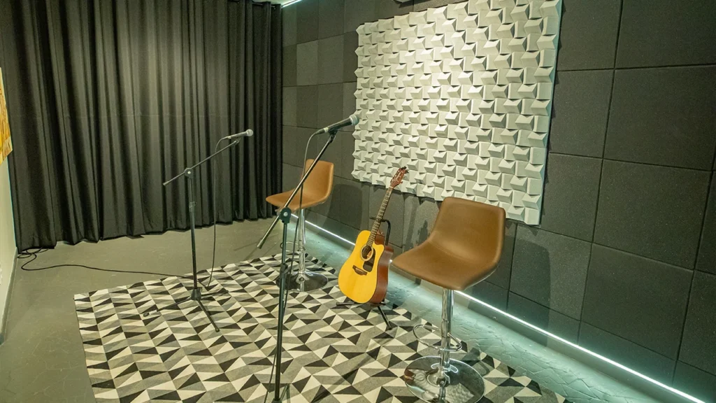 Espaços acusticamente tratados para ensaios e gravações ao vivo